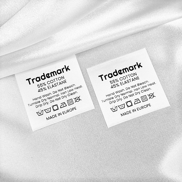 Etiqueta de cetim que inclui informação técnica sobre a composição do material, símbolos de lavagem e de cuidados e também o nome ou logo do fabricante. Este tipo de etiqueta têxtil é feito usando as tecnologias mais avanças no campo de impressões digitais num suporte têxtil. As etiquetas são impressas num cetim especial através do método de transferência térmica, com uma qualidade de impressão impressionante e alta resistência à lavagem.