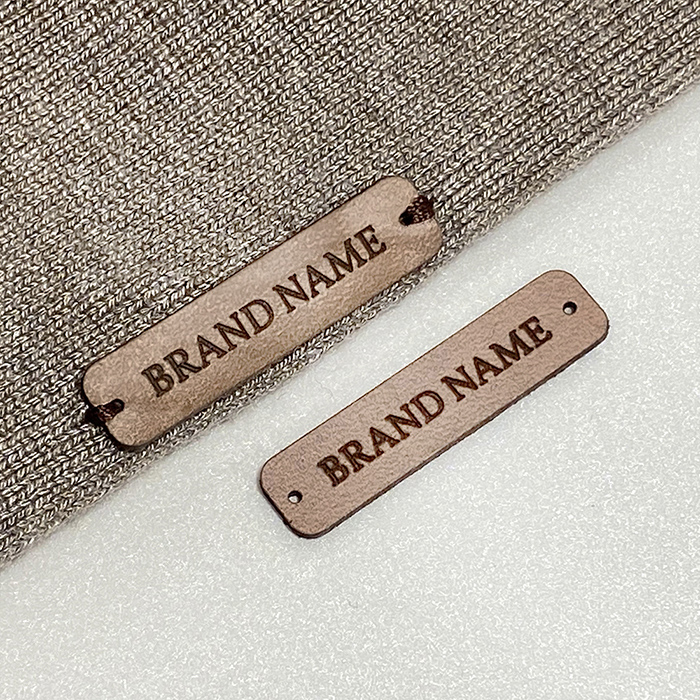 Etiqueta personalizada através de gravação laser modelo EP-M26 em couro natural, ideal para costura em vários artigos de roupa, calçado e acessórios de vestuário Este modelo de etiqueta em couro é produzido com couro natural de alta qualidade, utilizando equipamento de última geração e métodos profissionais de gravação ou estampagem a laser.