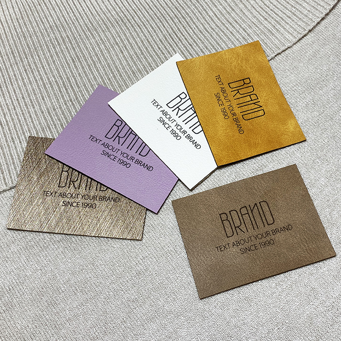 Etiqueta personalizada EP-M148 produzida em couro sintético para vestuário, malas, sapatos e vários acessórios de vestuário.