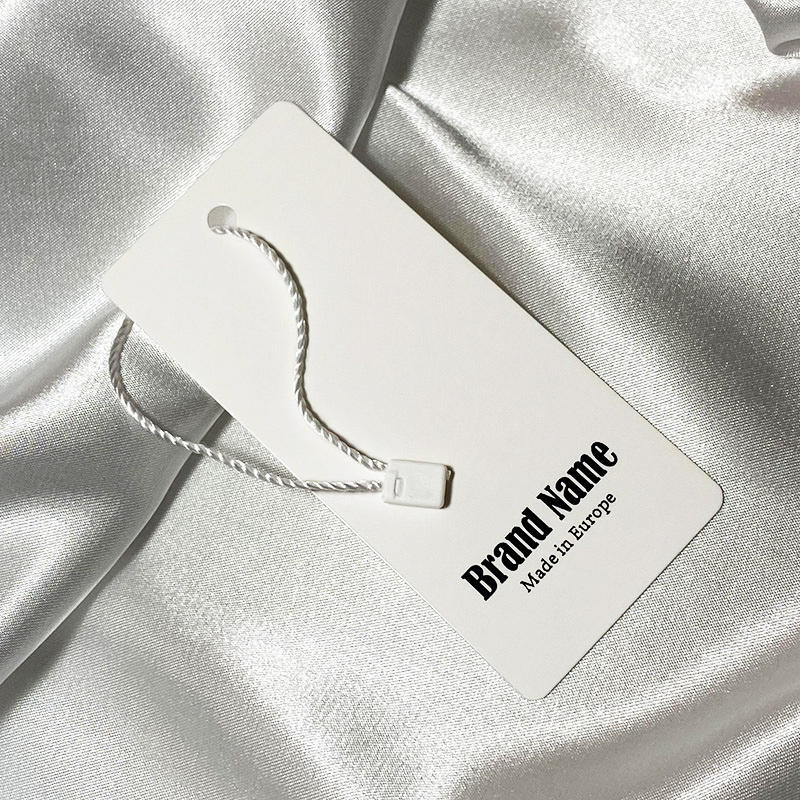 Etiqueta de papelão personalizada com cordão adequada para roupas, calçados, joias e diversos acessórios de vestuário, impressa com a marca e logotipo. Este tipo de etiqueta pendurada é feita de materiais de alta qualidade, usando as tecnologias mais avançadas no campo de impressão e acabamento Digital.