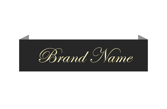 Etiqueta tecida com margens dobradas modelo Classic Style bordada digitalmente com o nome da Marca e um logo em cores diferentes, adequada para roupa e outros artigos têxteis. Este tipo de etiqueta bordada é feito de materiais de alta qualidade, usando as tecnologias mais avançadas do campo de bordado digital a um nível industrial.