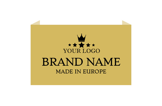 Etiqueta tecida com um design elegante bordada digitalmente em cores diferentes modelo Royal Style, personalizada com o nome da marca e emblema, criada para ser cosida numa ampla variedade de tipos de roupa para mulheres e homens. Este tipo de etiqueta bordada é feito de materiais de alta qualidade, usando as tecnologias mais avançadas do campo de bordado digital a um nível industrial.